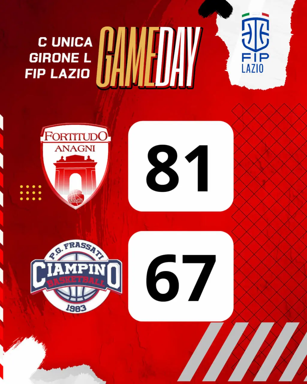 Esordio vincente per la Fortitudo Anagni che inaugura la nuova stagione con una convincente vittoria contro il Frassati Ciampino sul proprio camp, imponendosi con il risultato di 81-67. La partita, giocata in casa, ha visto i ragazzi di coach Grimaldi protagonisti di un ultimo quarto decisivo che ha permesso di piazzare la zampata decisiva e portare a casa il successo.